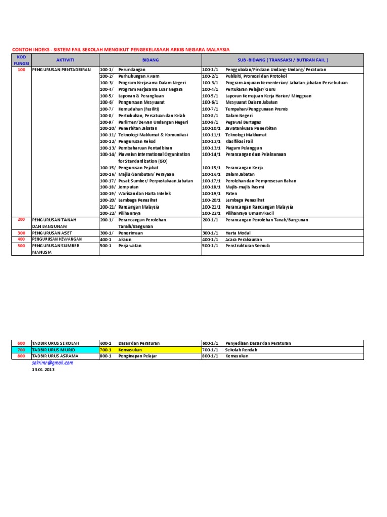 . 400 KEWANGAN 500 SUMBER MANUSIA 600 PENGURUSAN KURIKULUM 700 PENGURUSAN KOKURIKULUM Surat ARKIB kepada JPN. PENGKELASAN FAIL v Fail Urusan Am house keeping files v Fail Urusan Fungsian functional files. Bahan muat turun unit kokurikulum-minit mesyuaratlaporankertas kerjajawatankuasa dan lain-lain.